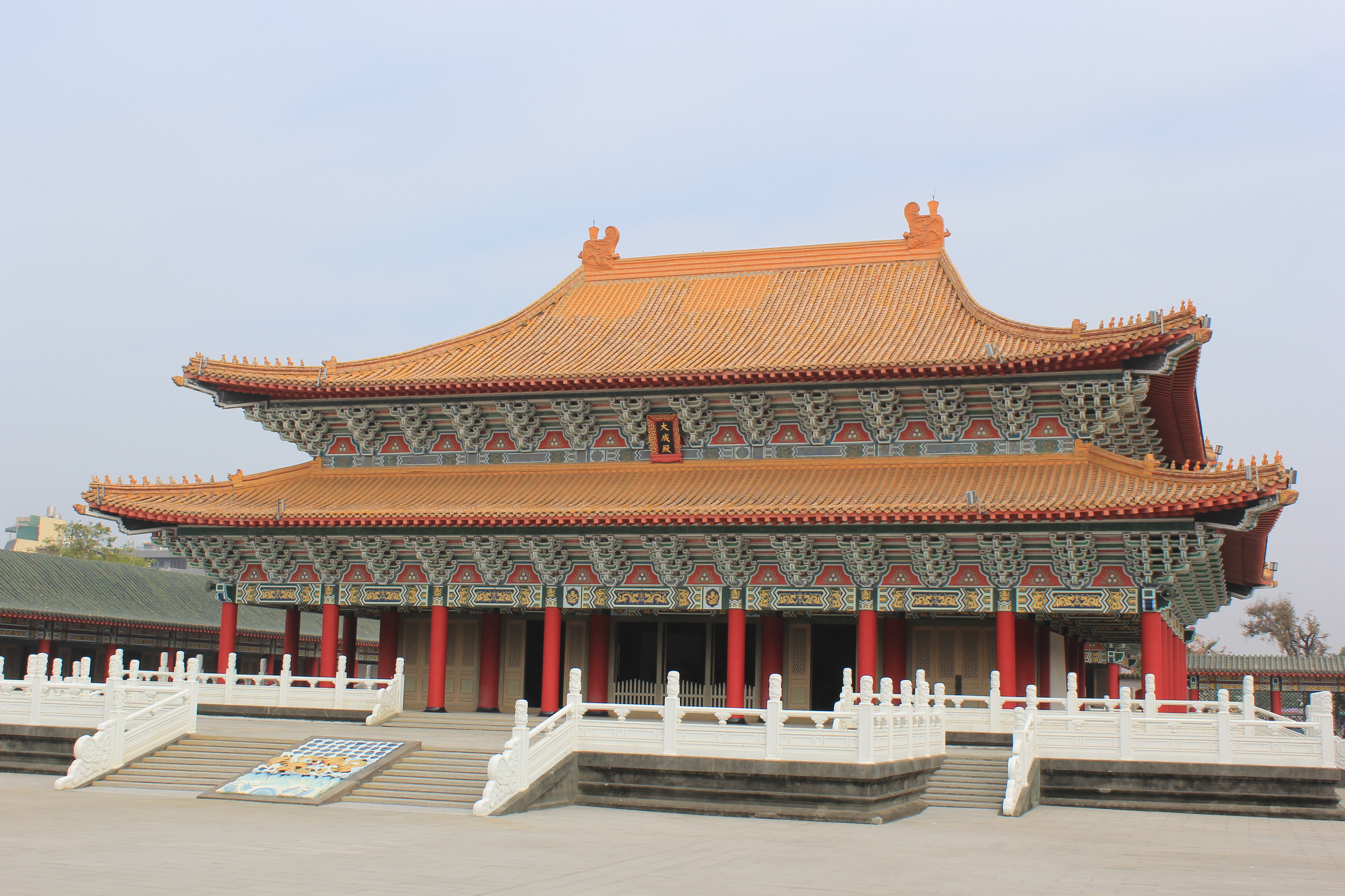 Our final full day in Taiwan and we cycled to the MRT station, parked the bikes and walked through to the Train Station above it. Then we hopped on a bullet train. Our destination was the next city of Tainan. The oldest city in Taiwan it is the country’s birthplace and is known as its cultural heart. The journey took 13 minutes on the bullet train. The station is out of town so they run free shuttle coaches which take an hour to get into town. We’d decided to get off at the Confucius Temple and then explore by foot.