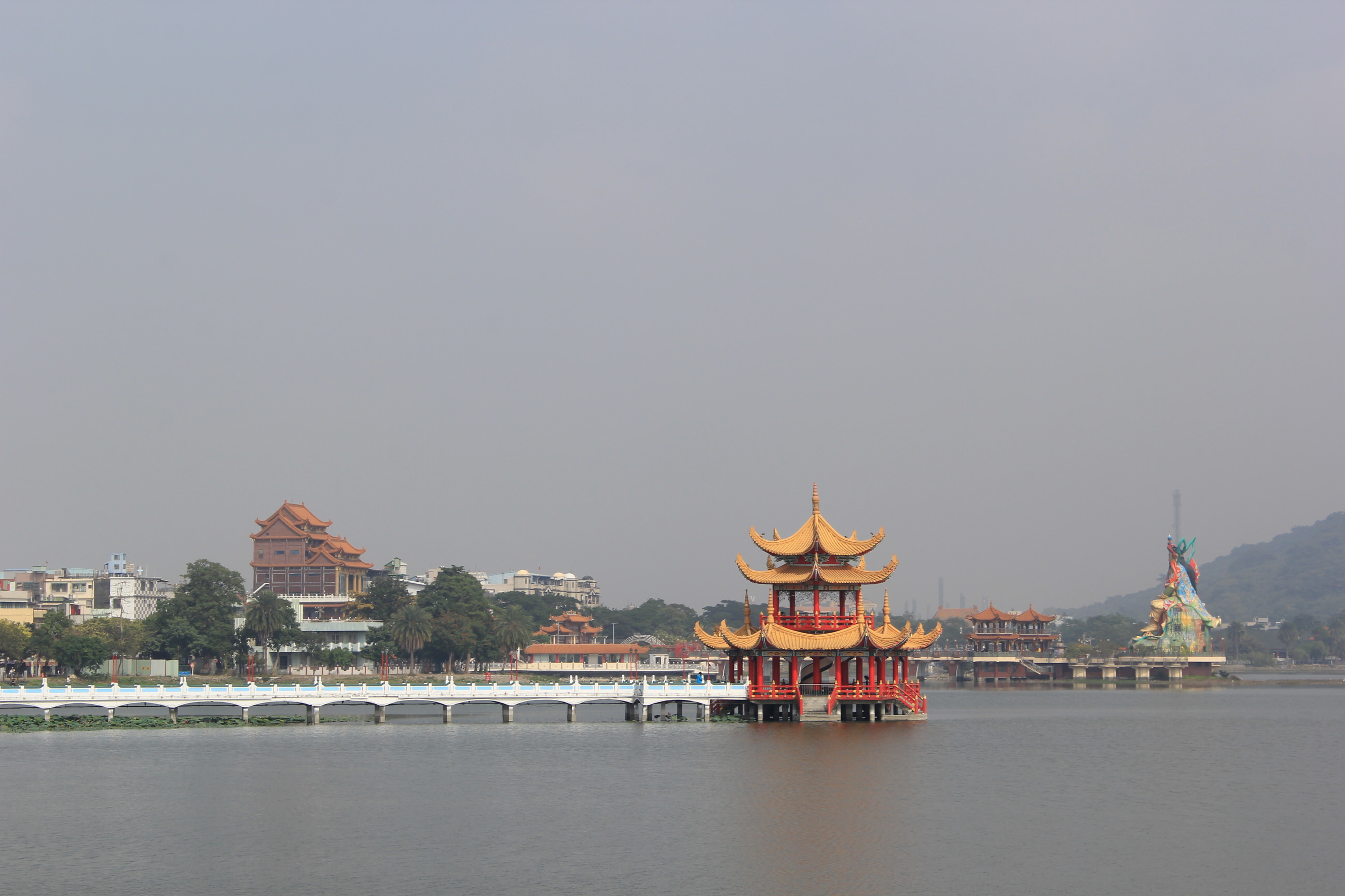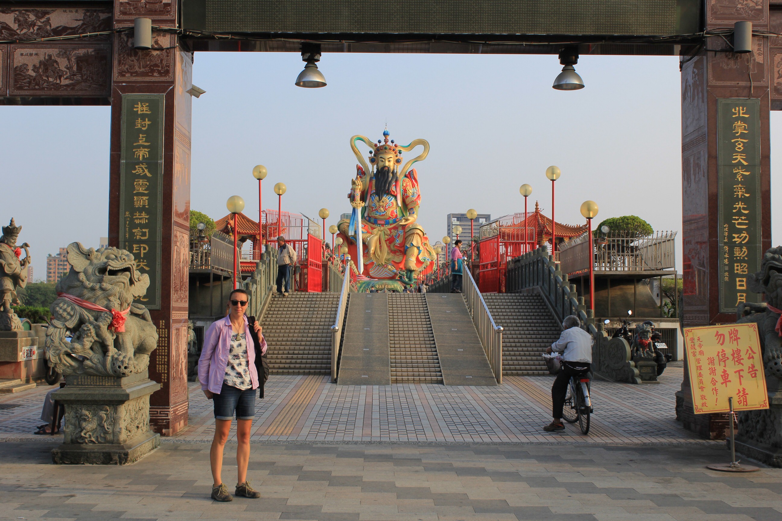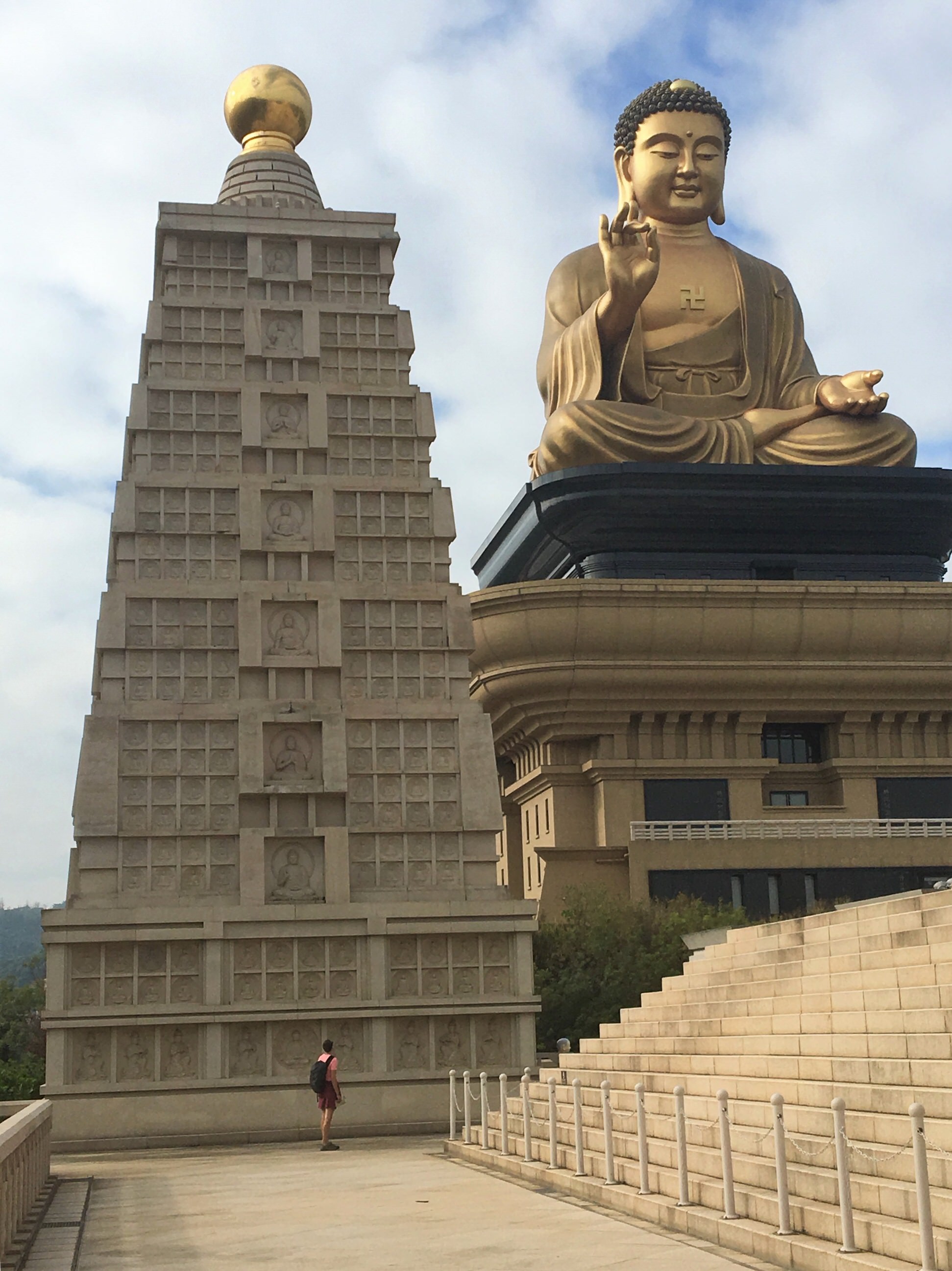 The next morning there was no sign of anyone at our digs and the streets were also still deserted. We wandered down a couple of alleyways until we hit the lake. A hub of pagodas and temples we were saving a proper exploration of them until the next day. Our plan for the day was to catch a bus to the main thing we wanted to see. Fo Guang Shan Temple is the largest Buddhist temple in Taiwan. It is also a museum and houses a relic said to be Buddha’s tooth. The big attraction for us though is the world’s tallest bronze sitting Buddha statute on top of the museum. 50m tall and made of 2,872 tons of bronze, it’s base takes it to an auspicious 108m.