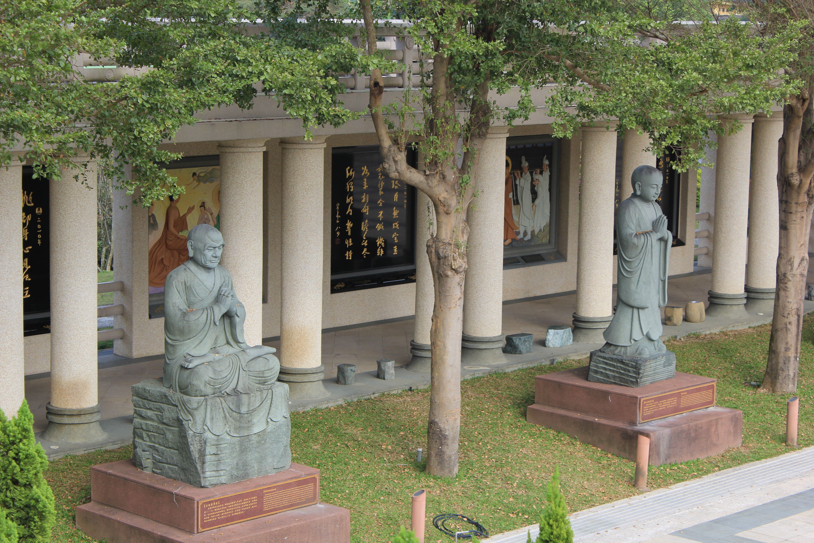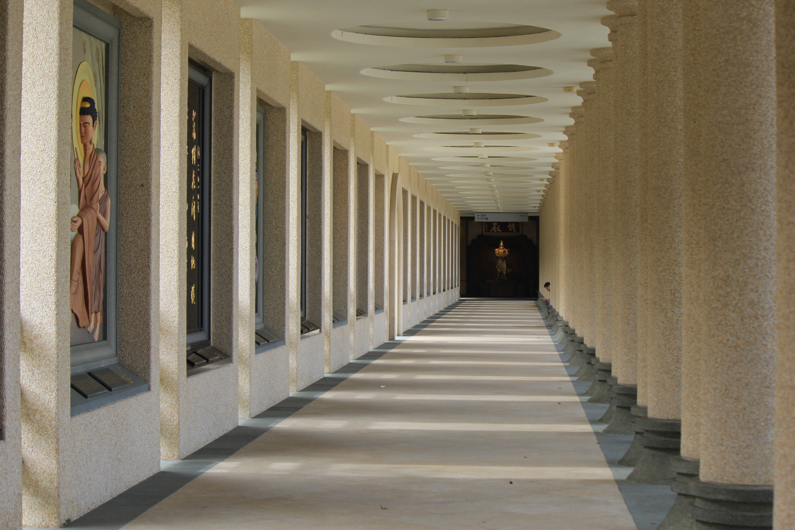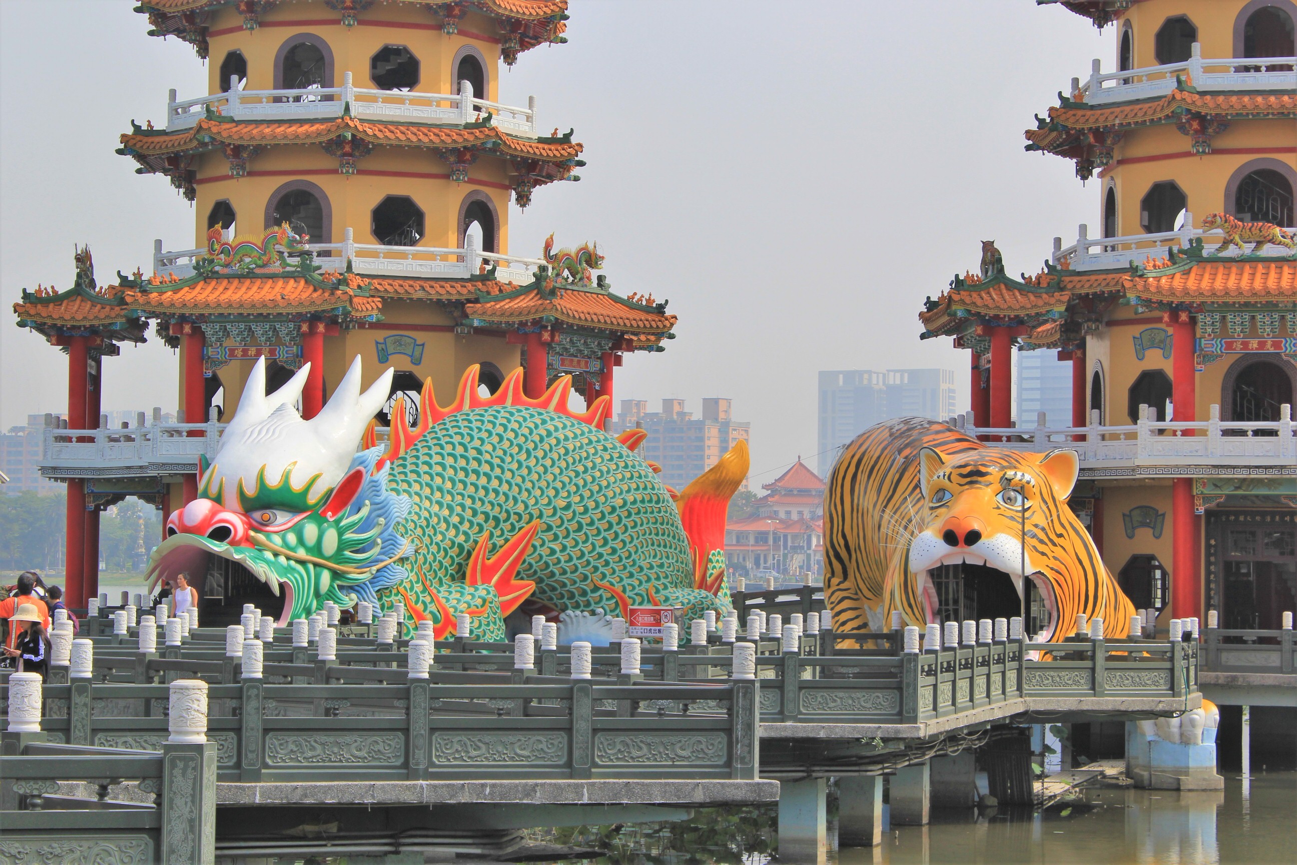 The next morning there was no sign of anyone at our digs and the streets were also still deserted. We wandered down a couple of alleyways until we hit the lake. A hub of pagodas and temples we were saving a proper exploration of them until the next day. Our plan for the day was to catch a bus to the main thing we wanted to see. Fo Guang Shan Temple is the largest Buddhist temple in Taiwan. It is also a museum and houses a relic said to be Buddha’s tooth. The big attraction for us though is the world’s tallest bronze sitting Buddha statute on top of the museum. 50m tall and made of 2,872 tons of bronze, it’s base takes it to an auspicious 108m.