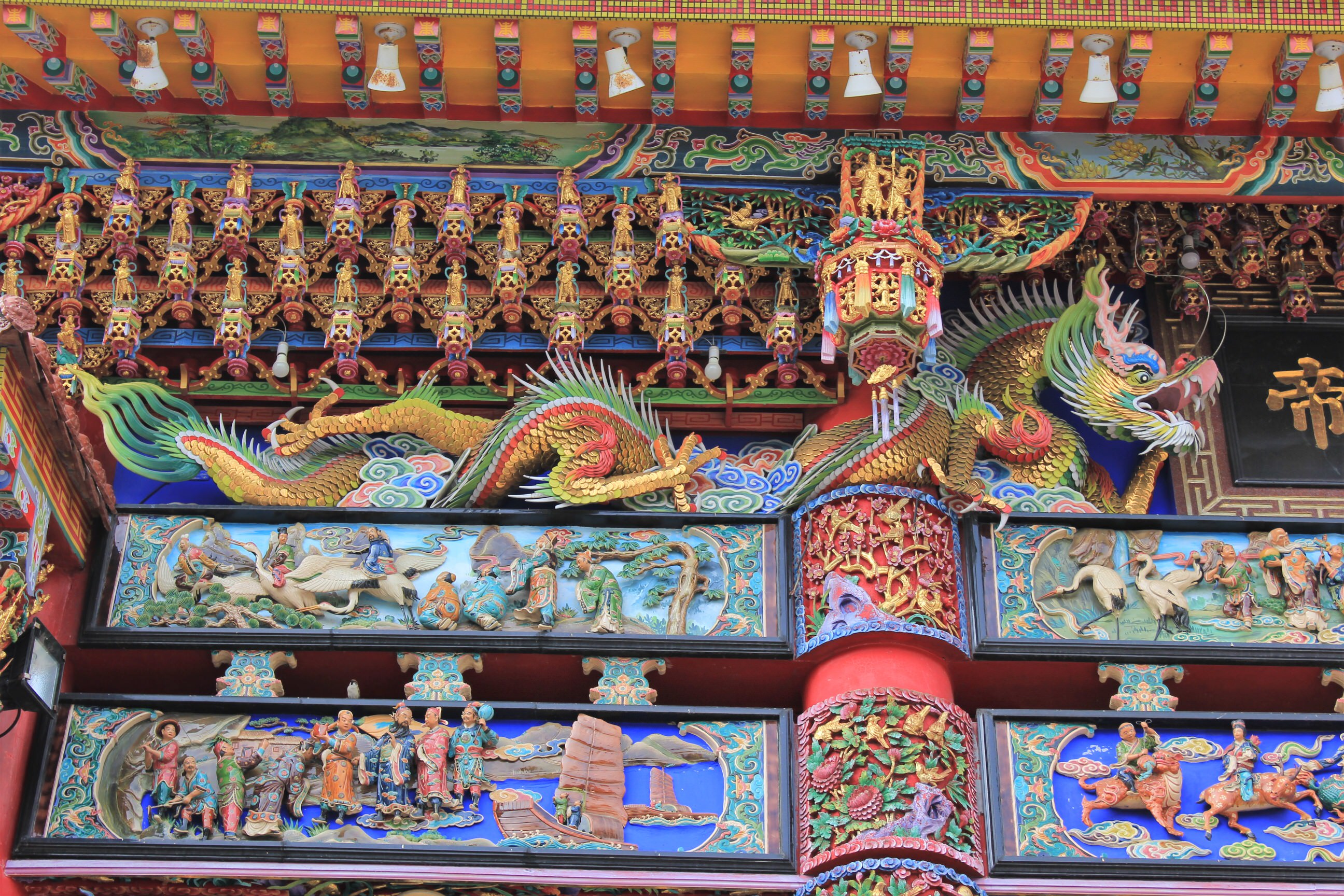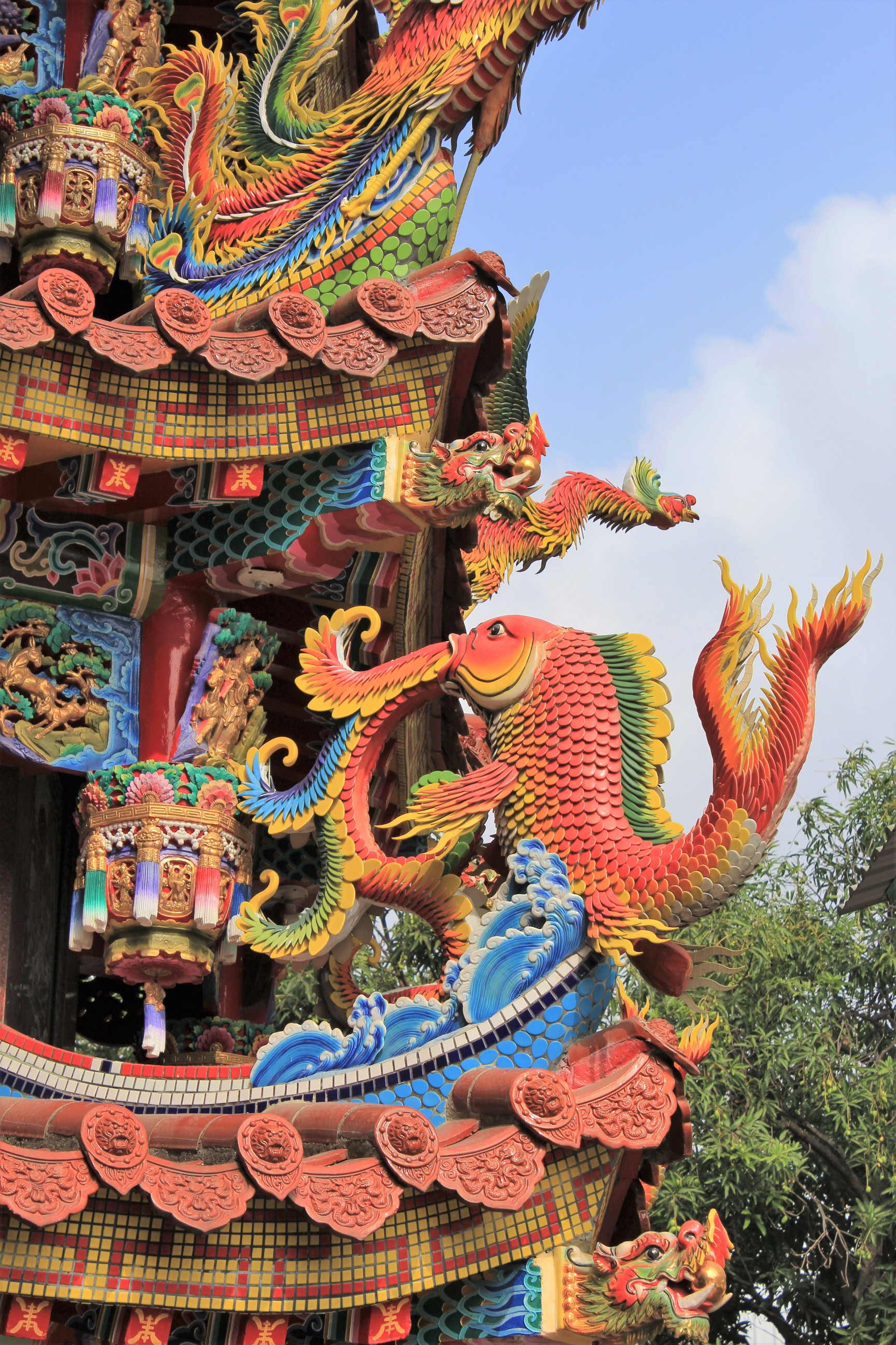 The temple had renovation work going on and was small and pretty unexciting. Afterwards we headed across the road to the explore the old streets. Bursting with traditional charm they were home to many nice craft shops and hipster style cafes. It was really quite a cool place. We’d marked on our map a few key places we wanted to go and explored as we went. We visited dozens of temples, stumbled across a street procession to move some statutes between temples, found street markets, old alleys, had some amazing fish for lunch, tried all kinds of local drinks, different iced teas and bubble teas, talked to friendly locals and returned the waves of the woman on the back of the rubbish collection truck.