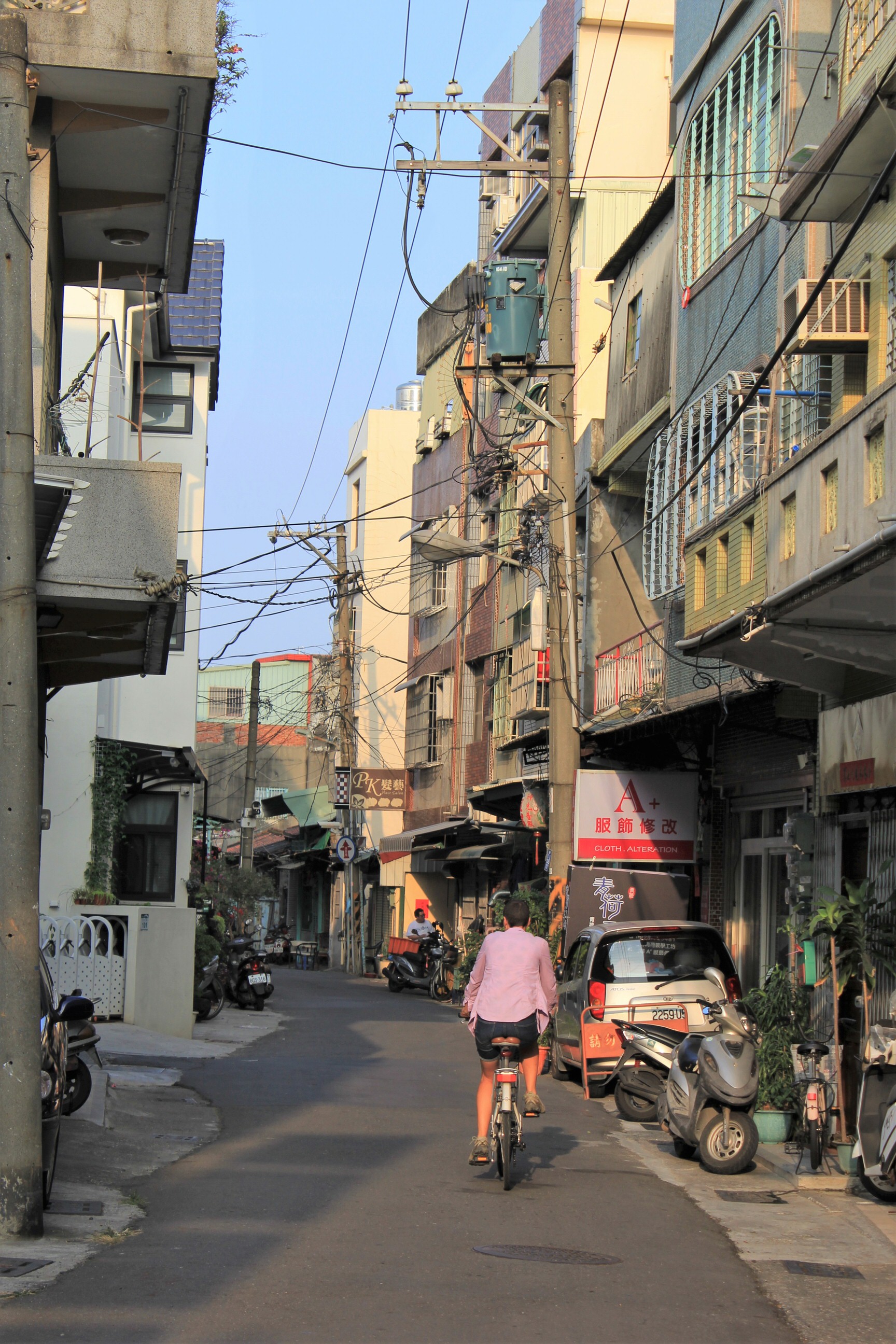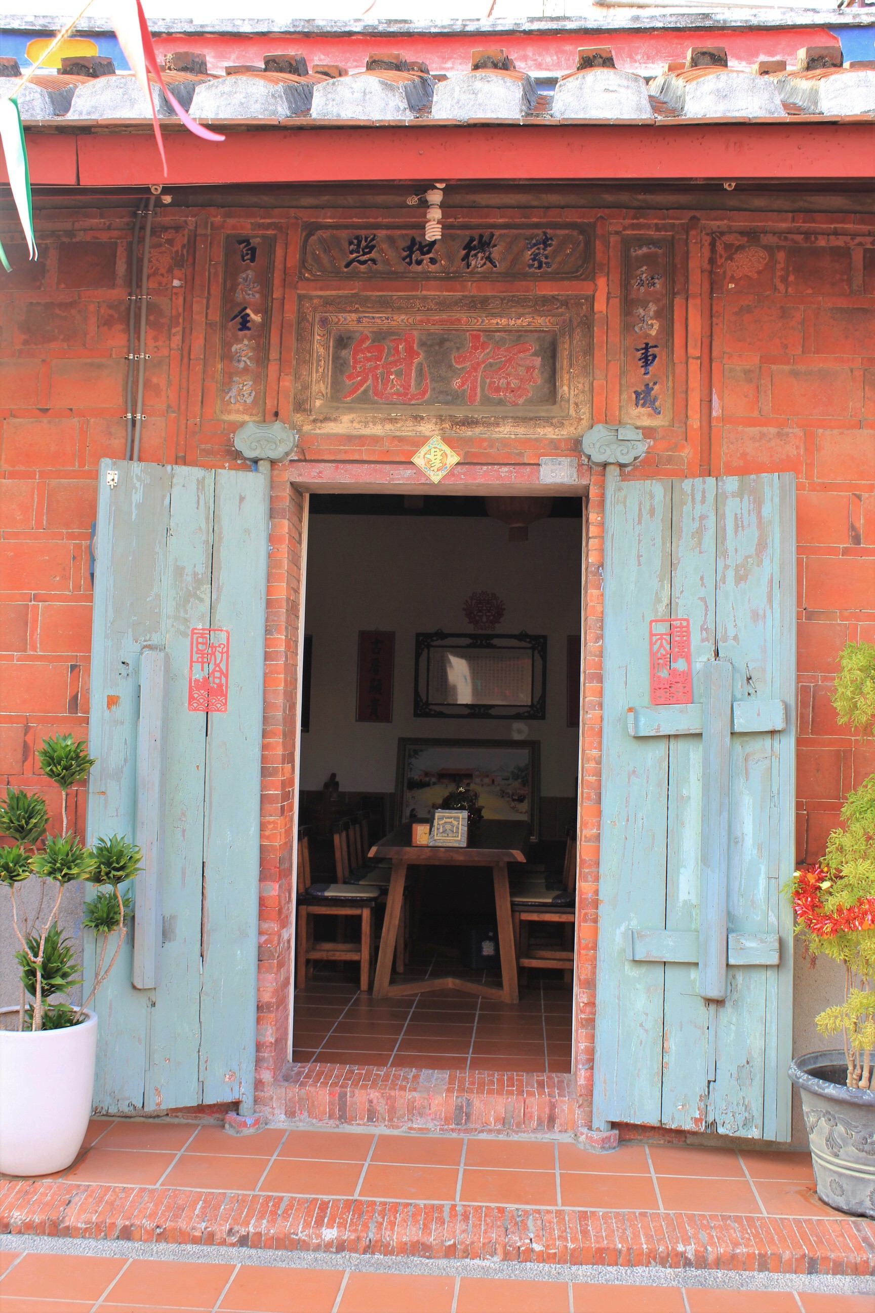Luckily our guest house had told us which exit to take and given us the address in Chinese to show a taxi. The driver, an old guy, didn’t know where it was but wasn’t at all phased. He asked the driver behind and with a rough idea put it into goggle maps. We knew we were down an alley off a street, when we reached the rough location our driver got out and walked the deserted street until he found the alley. He was very sweet and also walked us to the door to make sure we could get in. We’d been given the door code and when he saw it was a traditional Taiwanese house he motioned if he could have a quick look so we let him into the courtyard. It was so quiet, you could hear a pin drop. We had a lovely big room and great bathroom, fridge, kettle and aircon. All for around NZ$65 a night. Much better value than Hong Kong!