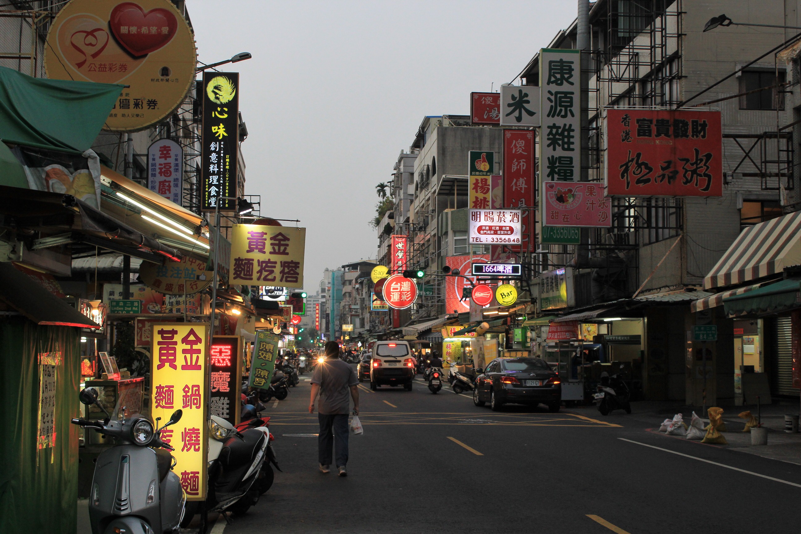 We were lucky in not having wait long for a bus, this time we had a straight run back, albeit a different route on a (once again) deserted highway. It terminated at the MTR station and we decided to explore the shops that side. We needed a SIM card and some food provisions. It took a while but we scored a SIM and we also found a bakery and scored some dinner and breakfast. Around our accomodation there were no shops and nothing open when it went dark (however it was also probably the quietest place we’ve ever stayed). We decided to head to one of the night markets so randomly picked one and jumped on the MTR. It was almost dark by the time we got off. In the heart of the city it still wasn’t busy but there was life. At the night market we finally found all the people. It was a good market, lots of weird and wonderful foods. Not feeling in the mood to be too adventurous we didn’t try much. We were shattered when we got back but had a good laugh when the taxi at the front of the queue turned out to be the driver we’d had the night before.