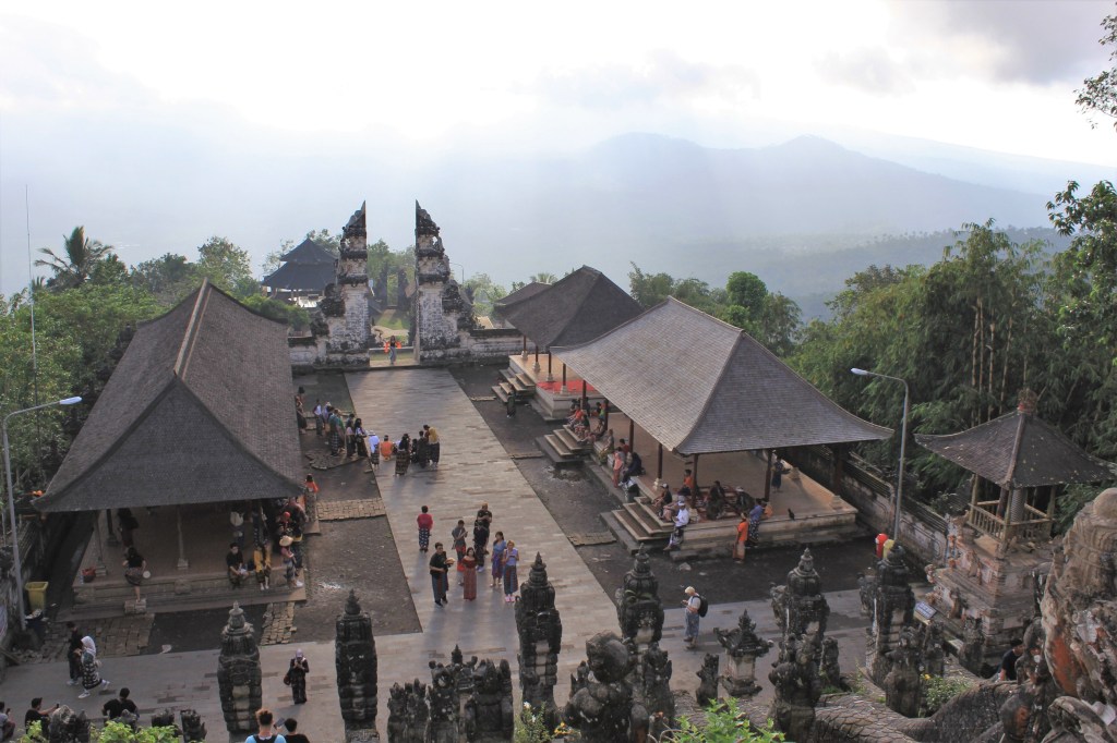 Lempuyang temple is one of the oldest and most sacred temples on the Bali. It is said to have one of the most breathtaking views from a Bali temple, and is most famous for its picturesque Gate of Heaven. A typical split gate but built in lighter stone, what makes it spectacular is on a clear day Mount Agung provides the backdrop. We didn’t get so lucky it was cloudy (though that didnt’ stop the line of people waiting to have their photo taken in the gate) but it was still a lovely temple and it was really nice introduction to Balinese temples.