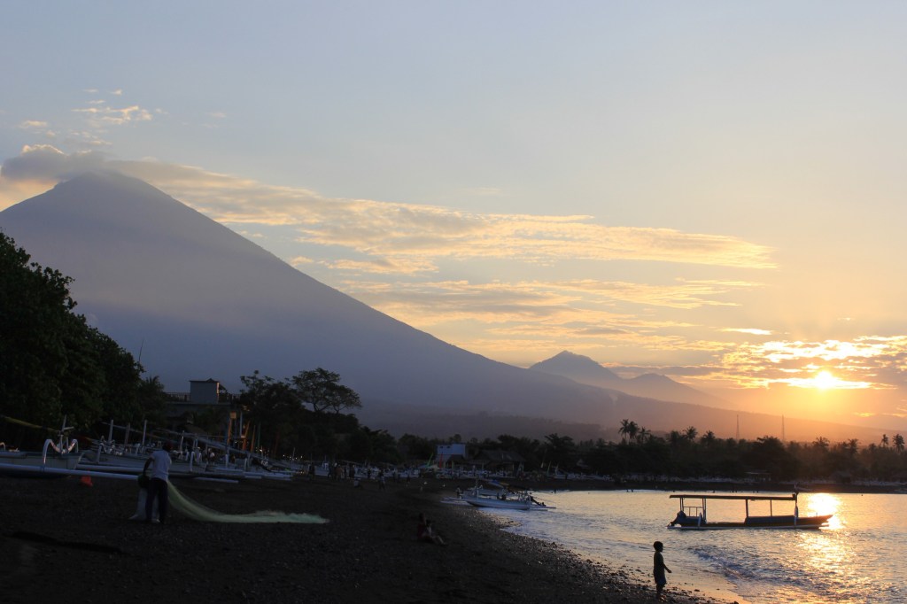 The scooter ride back was just as much fun as the way out and they stopped so we could photograph some of the local rice terraces. The late afternoon sun bathed everything in a soft light. When we got back we decided to head down to the beach to catch sunset. It didn’t disappoint with the majesty of Mount Agung dominating the landscape (3031m). With not even a hint a smoke it was hard to believe that this was the volcano that blew in November 2017 disrupting international flights and forcing 100,000 people from the area. So far in 2019 it has erupted every month (January to June) but thankfully it behaved itself while we were there!