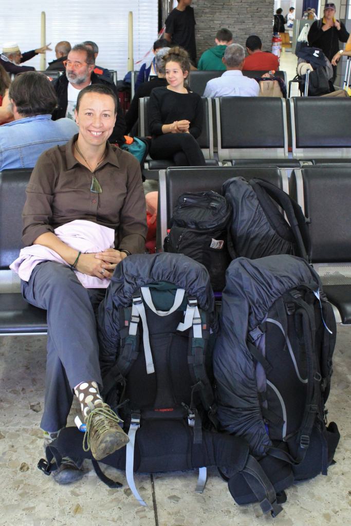 A low key affair for immigration, security made an effort; water had to be thrown away, watches had to be taken off and the camera taken out. They found nothing… Marie had knowingly got her knife on the plane this time. The first aid kit scissors hadn’t been picked up either…