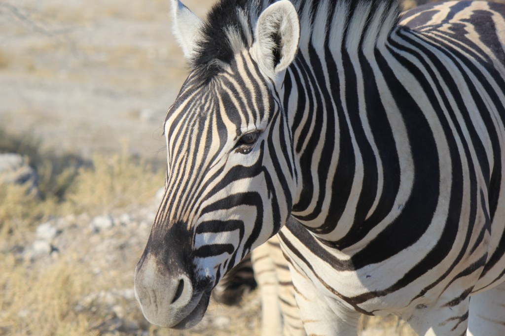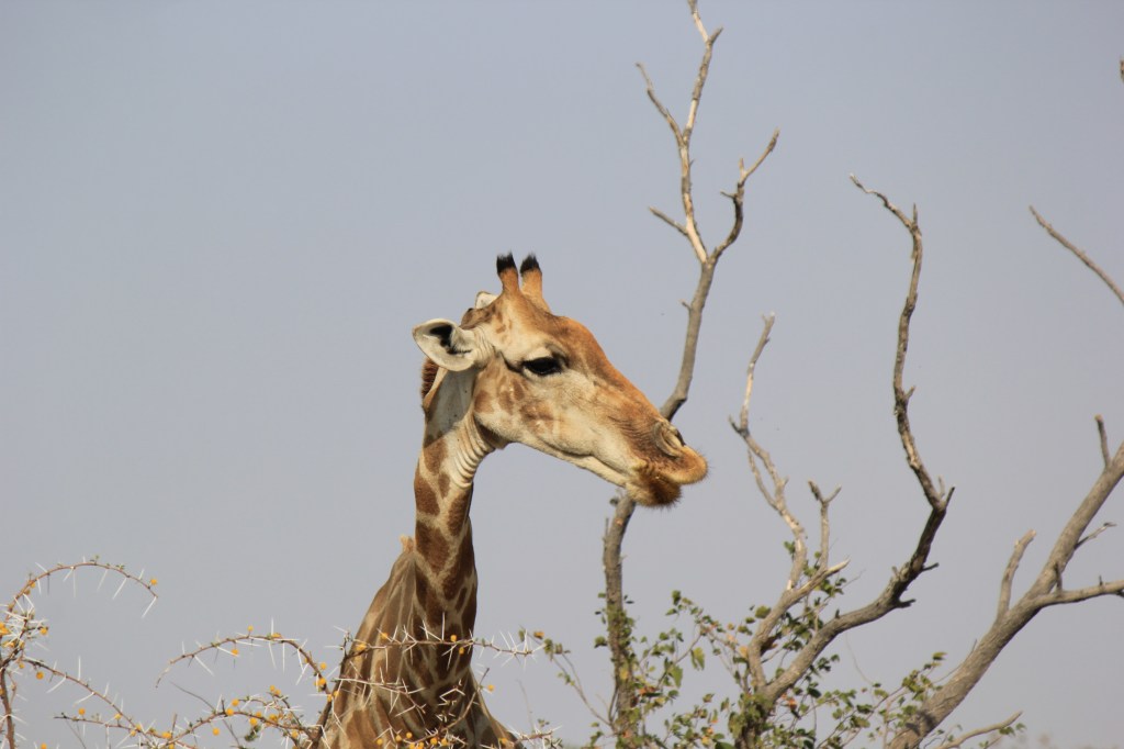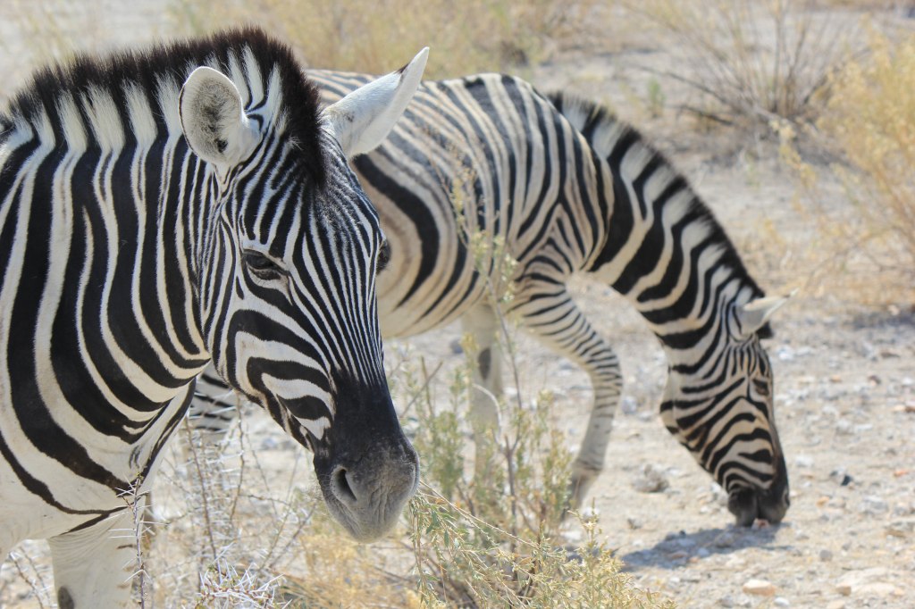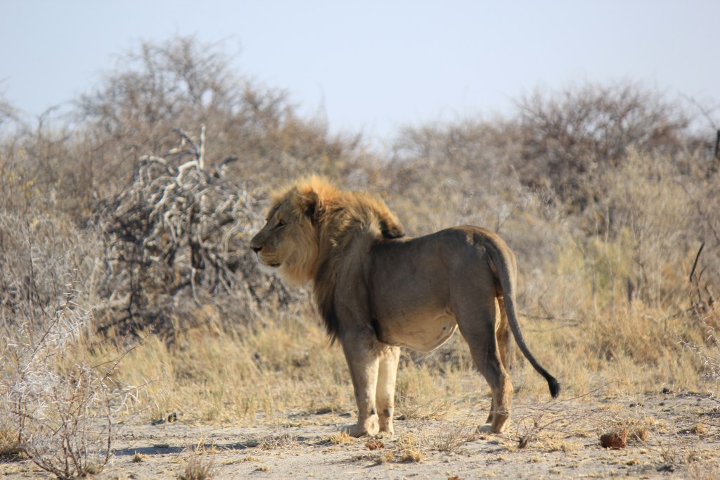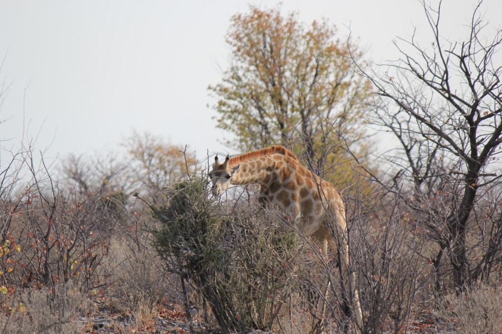 A few hours in and we stopped behind another parked 4×4 as it always makes sense to check out what others have spotted. They suddenly decided to reverse and despite Marie hitting the horn they drove into us – their rear driver’s side into our front passenger side panel. We’d left a good vehicle length gap and had parked staggered so we had been easily visible in their mirrors, they’d just got excited and hadn’t looked. We pulled alongside, 3 guys in a hire vehicle the driver was very apologetic. Luckily aside from bumper and light scrapes the damage was just to the panel so it was all cosmetic. We swapped all the details we could then carried on with our day. Our rental agreement requires us to report all accidents to the company ASAP no matter how minor so we duly did that at one of the Park campsites where we had lunch. It also required us to get a police report (it’s mandatory in Namibia to report accidents to the police within 24 hrs anyway). Failure to do either would result in us being responsible for the cost of the damage. The police usually at the camp couldn’t be found so we asked the police on the East gate we exited from that evening when we left the park. They couldn’t/wouldn’t do the report and directed us to the police station in the nearest town 20km away.