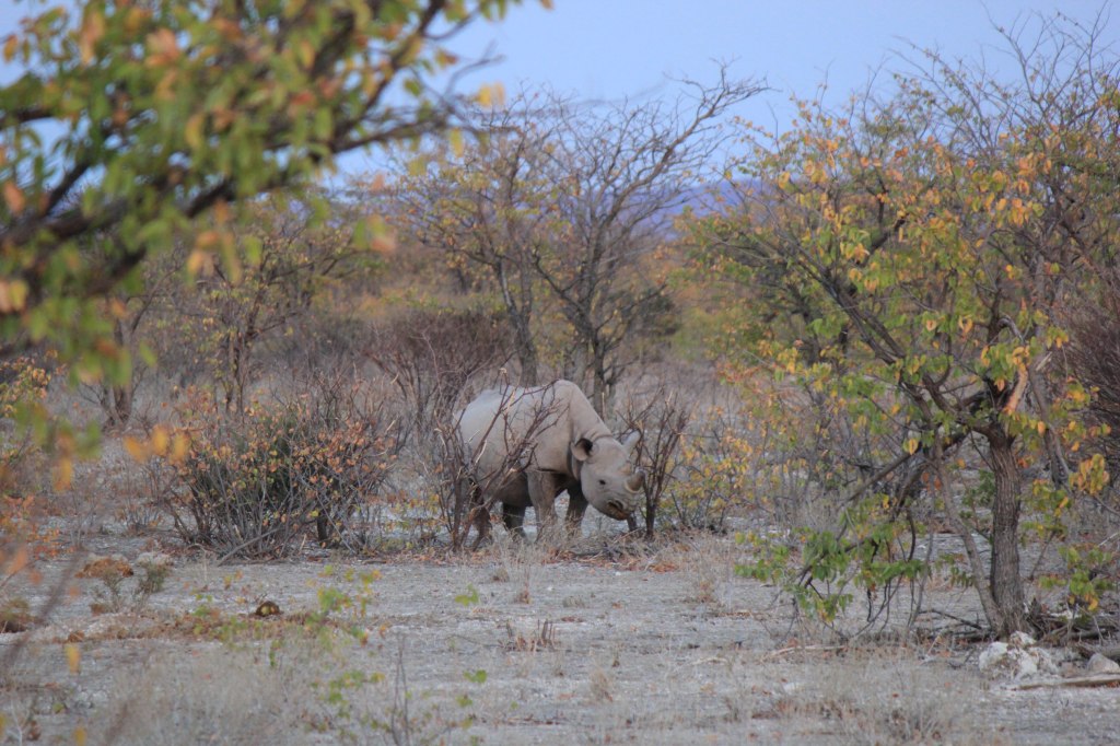 Over the course of our time in Etosha we also saw 7 rhino; 5 individuals and 1 pair. Despite being a fenced off protected Park the risk of poaching is still such that they ask you not to publish online information about the location of sightings. Our first one though was a pretty magical experience.