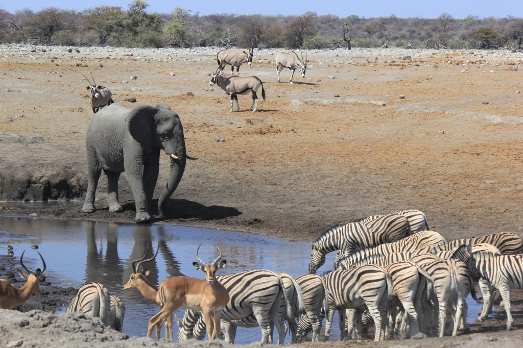 “Etosha” means “great white place” and refers to its unique feature; a huge salt pan visible from space. it is also known for its abundance of wildlife and being a fantastic park for self drive safaris.