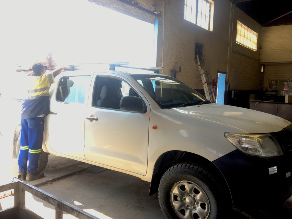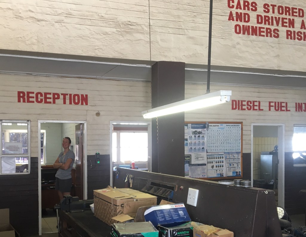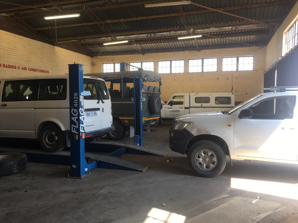 On their lunch break for another 15 minutes we drove down the road and did a good supermarket shop. They brought us straight into the workshop when we got back. The night before at camp with the help of google we’d figured out the fuse box and checked the low beam fuses, all were good. It turned out both the bulbs had blown. We decided to ignore the reason why both had gone at the same time (we know they were both working). The bulbs were surprisingly expensive, but Africa isn’t cheap. We did cheekily ask one of the guys if he had a spanner so we could tighten our lose roof tent bolt (it squeaks whenever someone moves at night), he kindly did all of them for us.