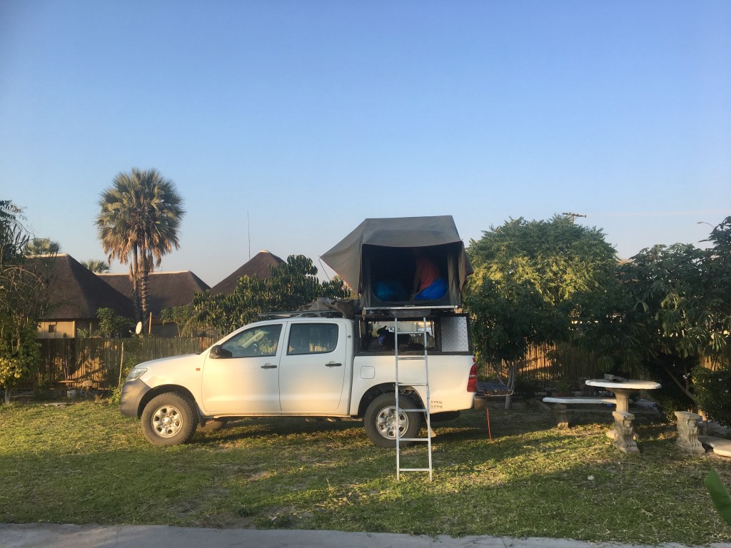 The woman on reception was really helpful, she let us set up camp in the corner of the guesthouse, we think we were a novelty, she gave us the key to a room nearby to use the bathroom. We were stoked, we didn’t have a plan B and we were tired. It had been a very long day but we were in Botswana!
