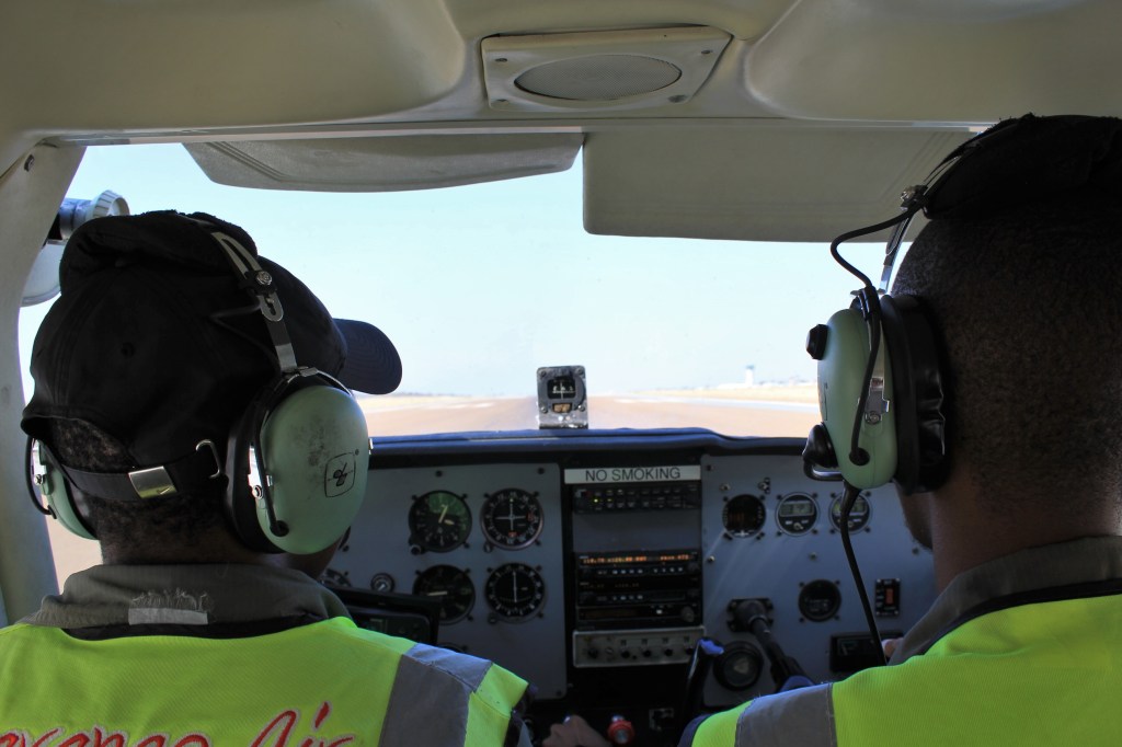 Our little Cessna plane had 2 pilots. This is probably meant to be reassuring. It wasn’t. It was slightly disconcerting… Every plane had 2, we think it must be a regulatory requirement. It was a stinking hot day, late 30’s degrees C. The pilot warned us that because we’d be flying low (500 feet) the heat would give us some turbulence.
