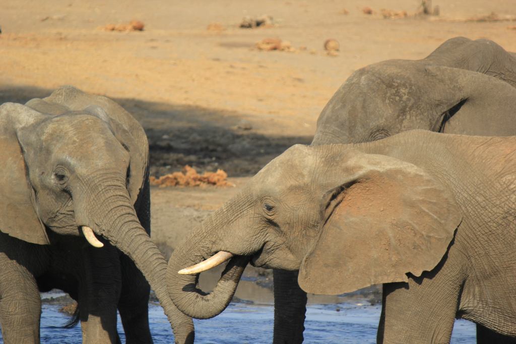 There was a reasonable breeze so it was dusty work even from the upstairs bar that overlooked the watering hole, but it was quite incredible being just meters away. The camp was unfenced too so the elephants would literally pass right by and then drink and splash around in front of us. We loved watching their behaviour, the lone males differed from the herds who always had a sentry keeping watch, the interactions when herds met and how after some barging some herds would coexist while others chased the other family off.