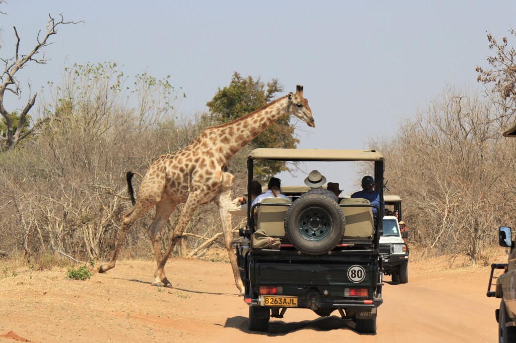 We reached camp at mid-afternoon. Marie was still feeling pretty washed out and the drive had been very long and hot. 10km south of the border town of Kasane (it has border crossings to both Zambia, which we planned to take, and Zimbabwe) we had a choice of a shorter 4WD access road or a long convoluted 2WD access road. We’d done enough driving and there’s no point having 4WD if you don’t use it. There were big warning signs about it being deep sand. We really didn’t want to get stuck, it was far too hot and Marie really wasn’t up to dealing with it (she does all the rough driving). It turned out to be a lot of fun, yes the sand was deep but it also had 2 sharp corners, a left then a right. Given the secret of driving on sand is keeping momentum and really not wanting to get stuck we took a high speed approach and slid around them. Such fun!