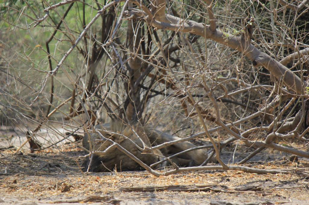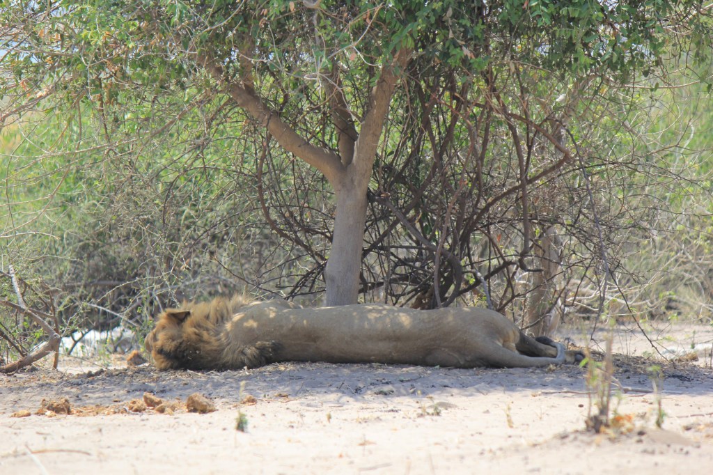 We did see a lot: elephants, hippos, giraffes, antelope, vultures and water birds. But our stressful morning ended on a high. We’d found the upper road back to the entrance gate and having stopped and compared notes with one of the other self drivers we knew there had been a male lion by the side of that road. One of the Safari driver’s restored the balance by signalling to us cat ears so we followed him. Sure enough hidden in bush we could see a male lion asleep, a bonus was 10m up the toad was another, this one couldn’t give a fig about being camouflaged. It was hot and he was just collapsed under the shade of a tree.