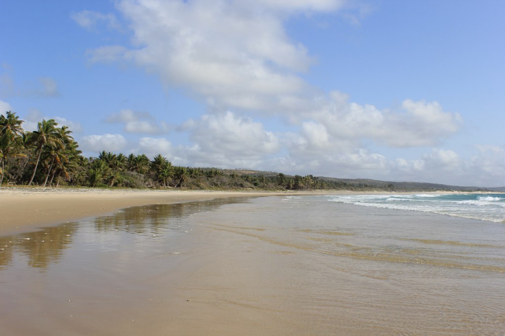 We got another 2 hours farther south before finding somewhere to camp for the night. 20 minutes down a shallow red sand road that was pocketed with waving school children as they walked home we reached the campsite. Reception had already closed for the day so the security guard registered our details and told us where to go. A large campsite nestled in the trees and coconut palms alongside the beach, there was hardly anyone else there. It was pure paradise. The long white sandy beach, the perfect sea, and we couldn’t be camped any closer. We were lulled to sleep by the sea and lay in the next morning looking through the palm trees to the beach.