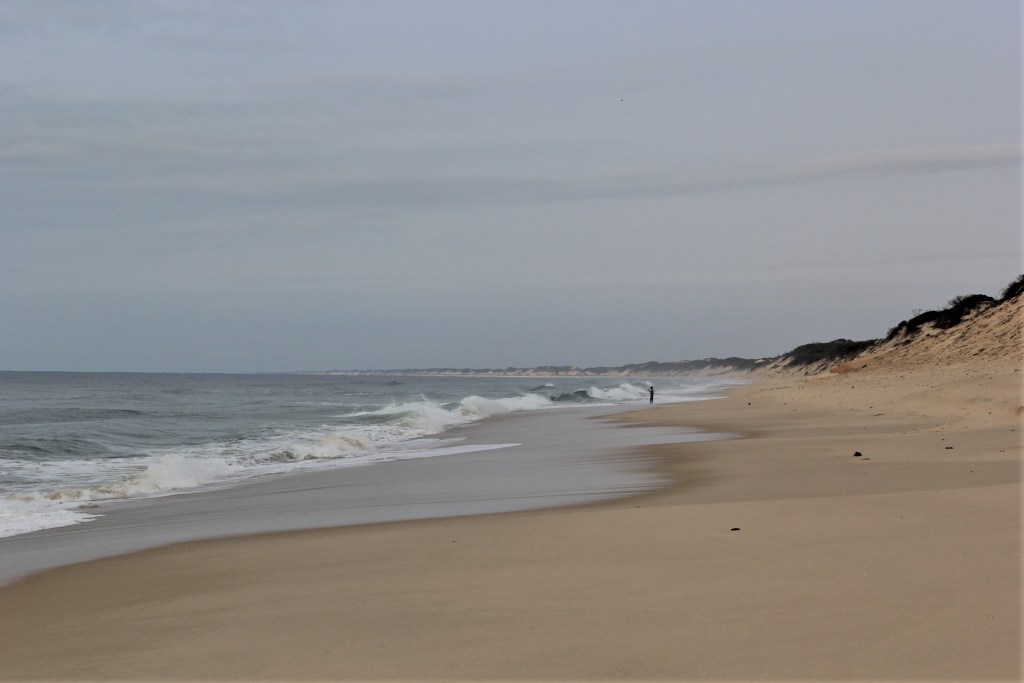 Before leaving we took an early morning walk up the big sand dunes next to the camp and down onto the beach. The tide was in so there wasn’t a lot of beach but it ran as far as the eye could see and there were just 2 men out fishing from it. Stunning and remote.