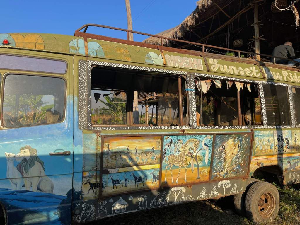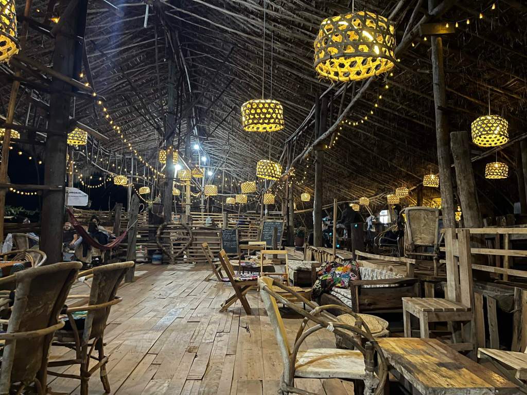It was bloody hot though, around 30C, and by the time we’d turned back we’d had enough and were ready for camp. We found a restaurant on the outskirts on the main town of Moshi that has just started doing camping. It is a super cool place, huge and on stilts it is all hand made from recycled materials and build during covid. Bonus it meant for the first night we didn’t need to think about cooking.