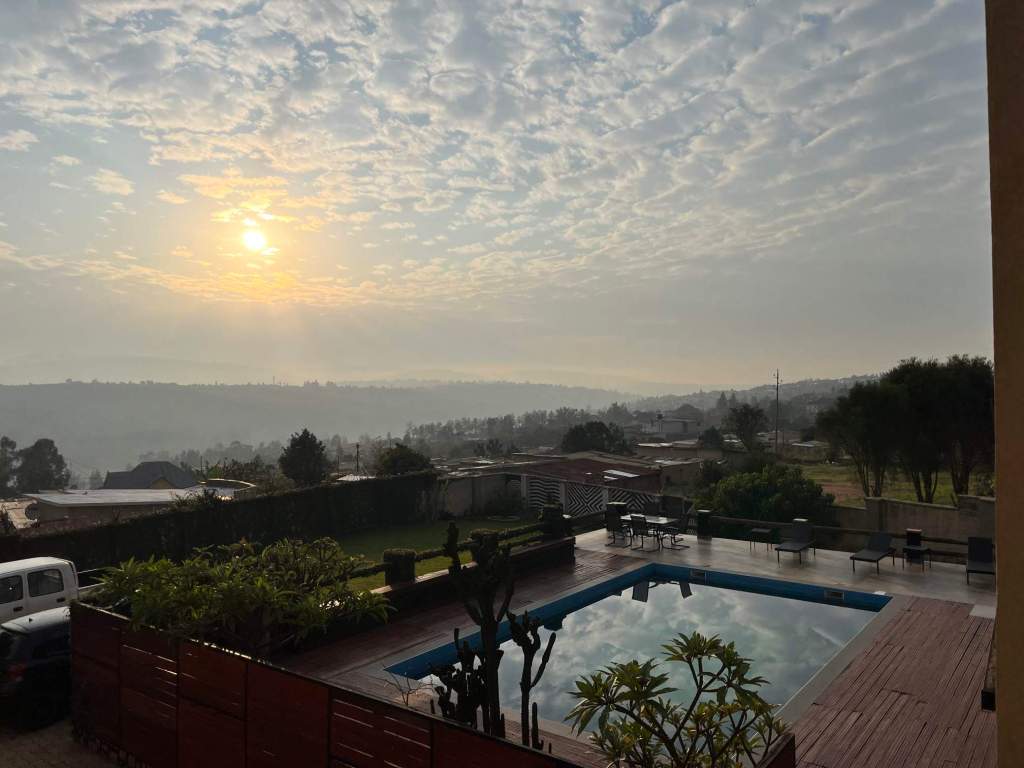 The hotel was on a hill and in a quiet area. Our room was on the first floor with a tiny balcony that gave us something of a view. It looks modern and had a pool (which you would not swim in but made it look fancy with recliners around it on a nice deck) and a quiet but equally nice set open sided restaurant.