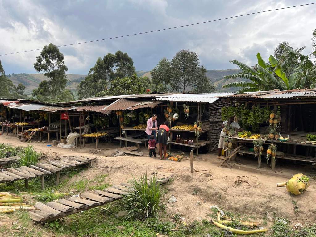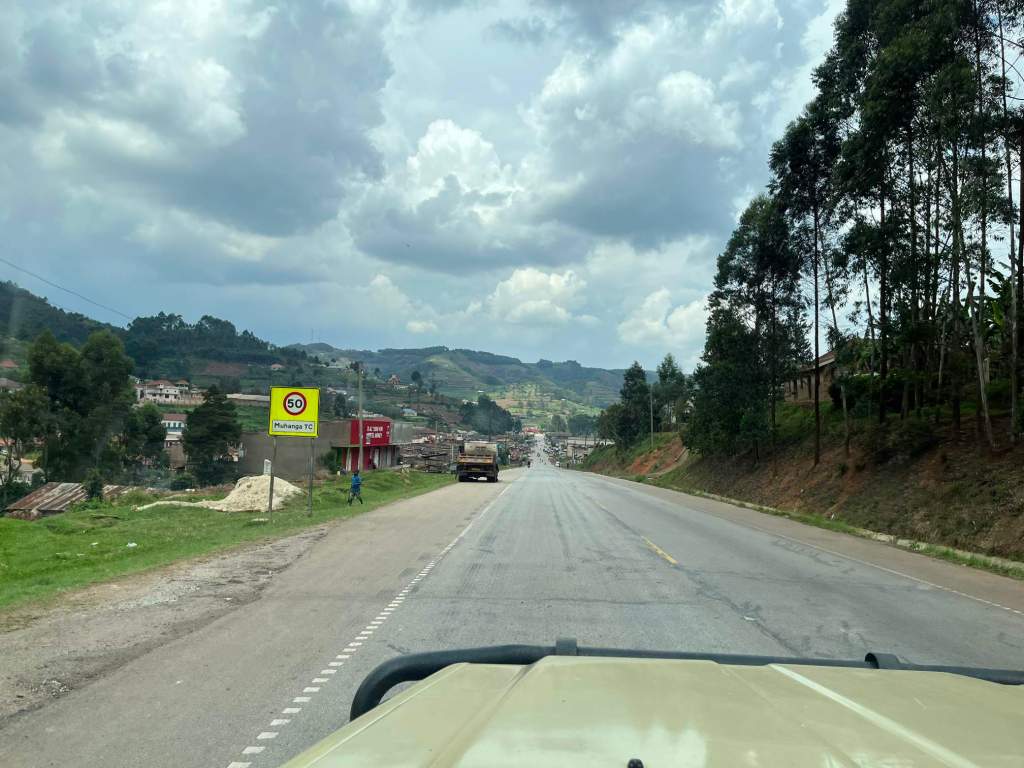 Then we stopped at a fuel station and filled up the rest of the tank. A proper western service station it had a shop attached and also sold oil. A few days ago when doing our regular, every few days, vehicle check our oil looked like it had gone down a bit and in Tanzania and Rwanda we hadn’t seen any, so we bought a small bottle to carry with us and better yet the shop did coffee. Not the best coffee but given we’d had none that day it did the job. We got out of town and then pulled up by the side of the road to drink it. A couple of children walked past and started talking to us. It was a really nice engagement, eventually they asked for ‘500’ (about 20 cents NZ) but when we replied with we don’t give people money they just carried on talking anyway.