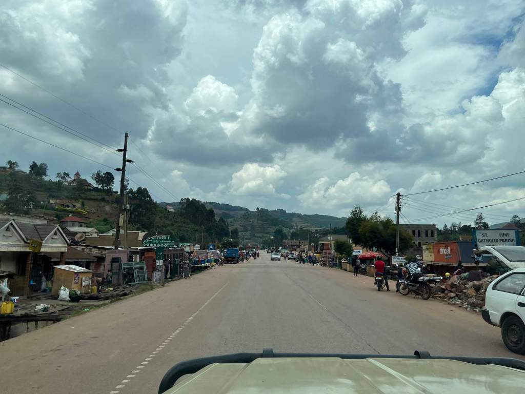 We went all of 30 yards and parked up amongst the cars and trucks by the street booths. We quickly found the phone network one and then got SIM cards. It’s a bit of a process in East Africa as rules mean you can only have 1 so you have to give your passport, and then in a first we each had to have our photo taken holding the SIM card and then we had to wait for them to be registered (which usually takes a good 10 mins). Marie stayed with the vehicle when not needed and Emma at the stall. The guy had clearly done it many times and knew exactly what to do. He also had quite a bit to say about Rwandans and not much was favourable. Marie had a number of people speak to her and some simply said ‘welcome to Uganda’ only one asked her for a bit of food or money and he wasn’t persistent.