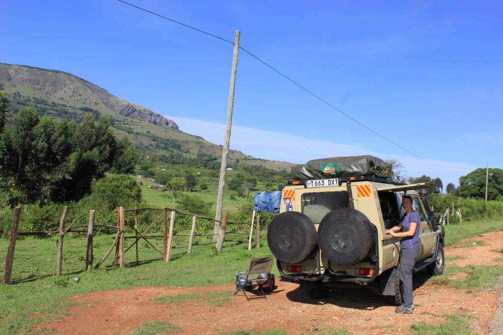 We woke to a damp morning and because we’d slept with all the flaps closed it was also slightly damp on the tent. The vehicle was no better, our laundry had steamed it up but was a long way off dry. After packing up, saying our goodbyes and making it down through the banana plantations we were surprised to discover the road shrouded in mist.