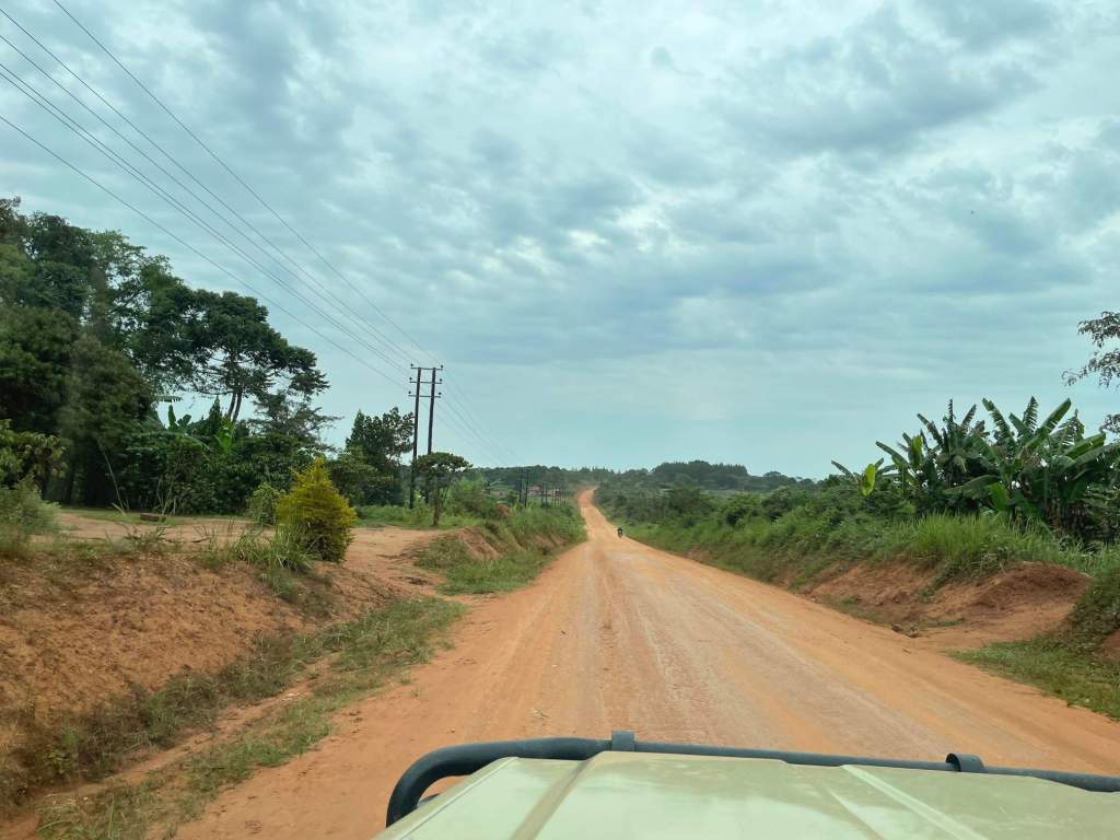 The most direct route would have been to go through Kampala but we knew how slow and hard heavy traffic driving that would be so as we got close we took some dirt road detours to skirt around most of the city. They had clearly had more rain there as they were closer to red mud. Single width we didn’t meet much traffic but did drive through some very rural villages with kids with the extended malnourished bellies, forests and sugar cane plantations. Weirdly on one road it was being built into a proper road, big and wide and in the process of being surfaced. However it was being built in sections in seemingly no particular order. Neither starting from the middle nor either end, but it provided a bit of relief from the rough driving. The ‘tank’ as we’ve nicknamed it is built for these roads but its a basic vehicle so passenger comforts are sparse.