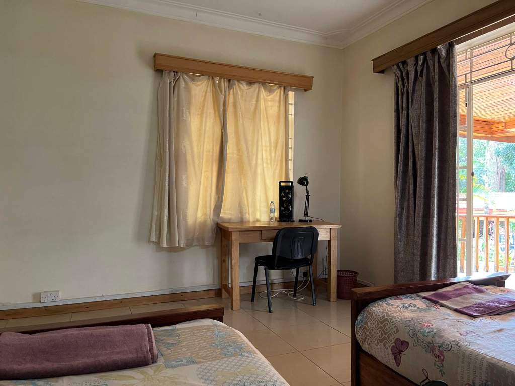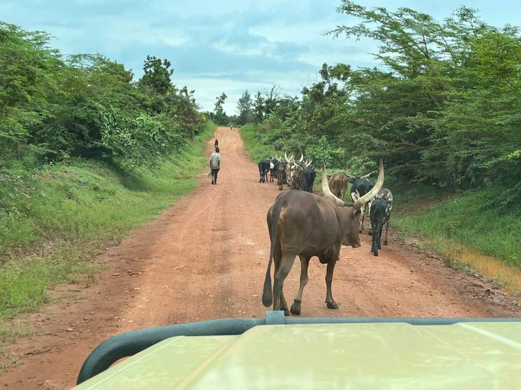 While the city was at its best we decided to head to the farther away place we wanted to go – the Kasubi Royal Tombs. However when we finally got there and found our way in (the place was deserted) they told us the entry fee was 3 times higher than the website said. The site experienced a major fire a few years ago (though the tombs underneath were undamaged) so there is ongoing reconstruction and online reviews of the compulsory tour were very mixed. The price quoted made it expensive so we declined and went through the hassle of getting another Uber, we didn’t have an alternative place worked out and we were tired so headed back to the guesthouse, had a walk to the supermarket and a nearby restaurant for an early dinner then spent the evening hanging out on the covered deck to our room.