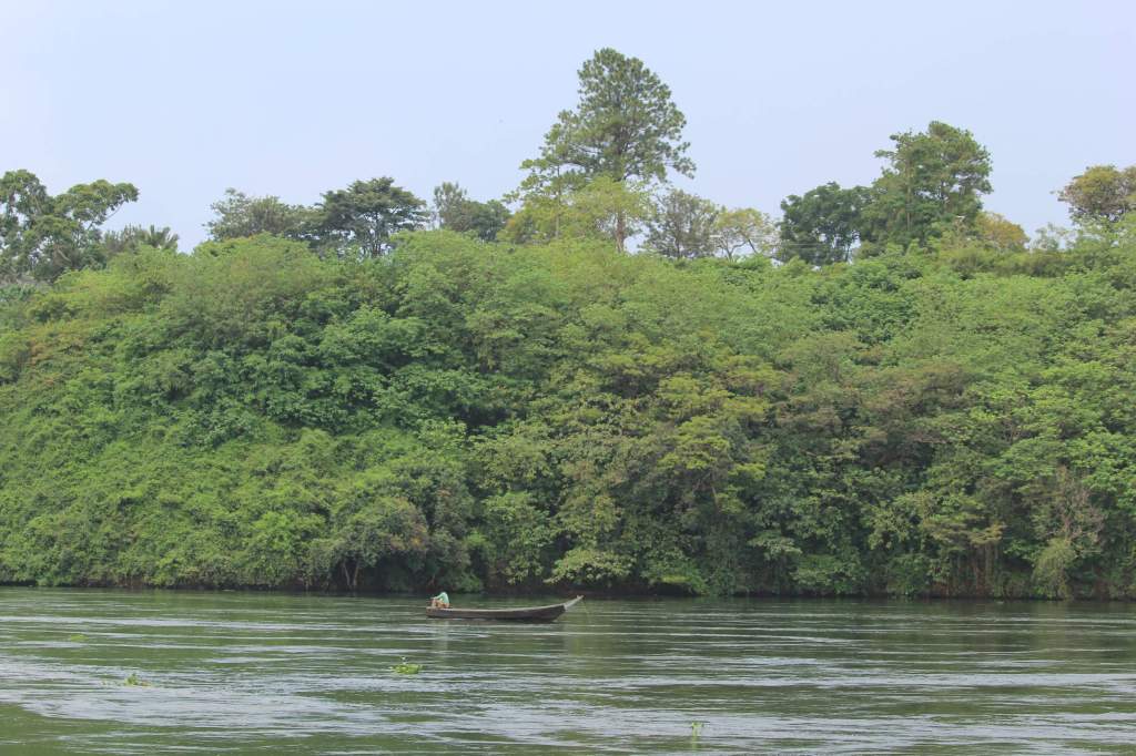 We’d been joking about crocodiles, particularly after seeing plenty further down the river at Murchison Falls, when something suddenly popped up near the bank and it was moving towards us. Assuming it was a croc’s eyes we moved away from the bank fast, by the time we stopped and turned round for a better look it had gone back under. We asked later, and there are no crocs there, what we had most likely seen was an otter – who would have guessed?!